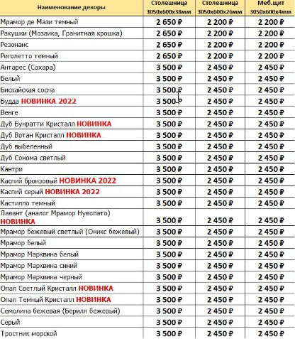 Также сообщаем, что из Акции выводятся следующие декоры: С 20.01. на данные декоры будут действовать цены согласно вашему прайс-листу.